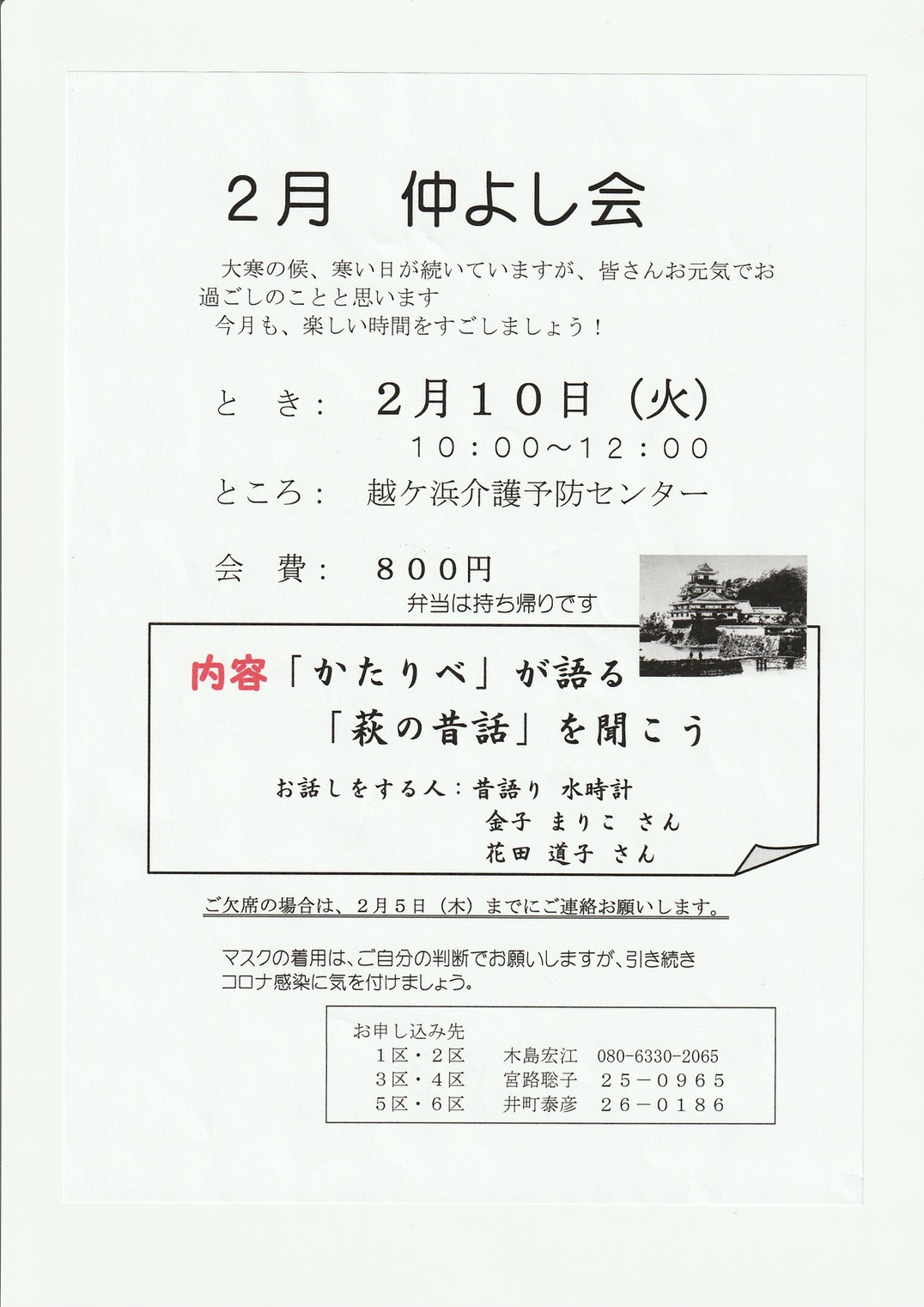 日時:12月21日(日) 14時から15時 場所:越ケ浜介護予防センター
